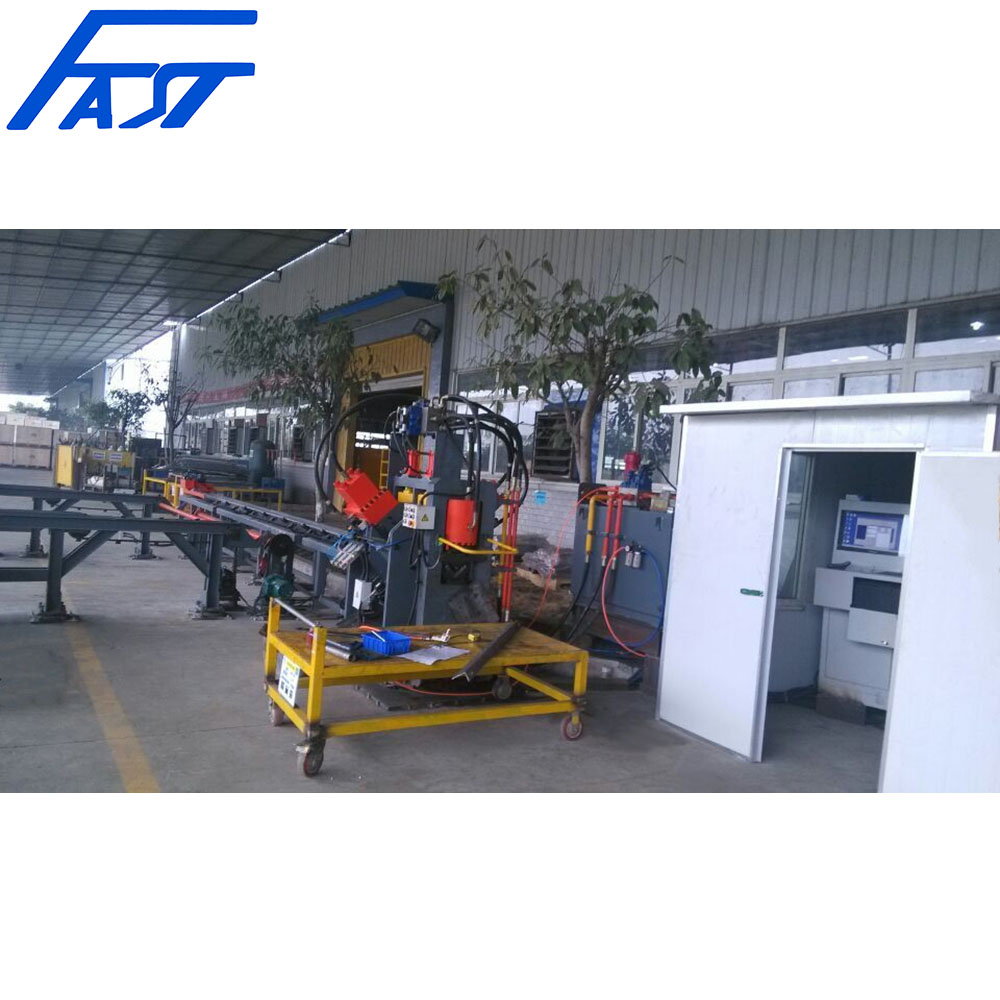 This machine is the automatic special production line used for angle steel punching, marking, and shearing mainly in the field of angle steel tower industry, electric power fittings, structure storage facilities, and steel structure construction industries, etc.