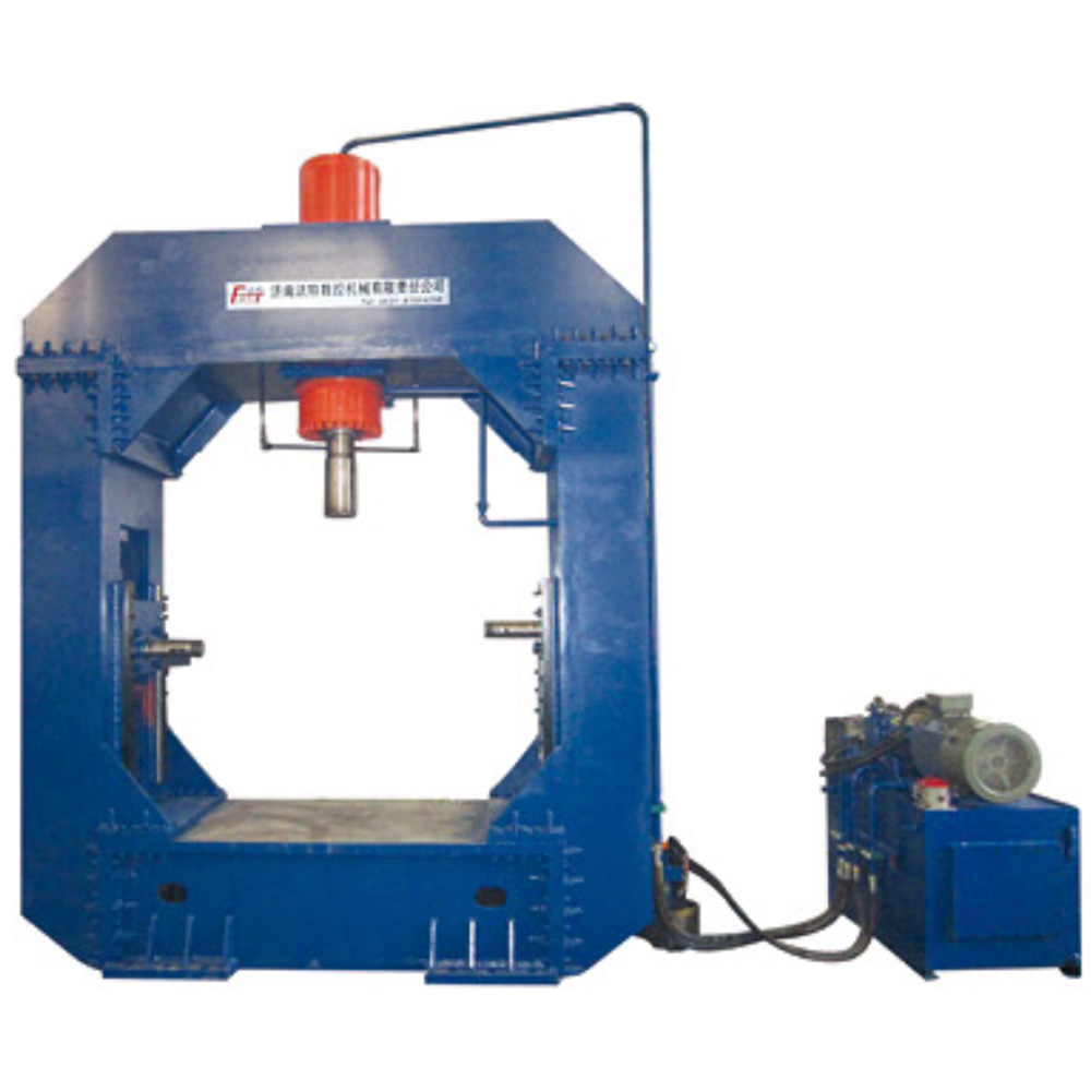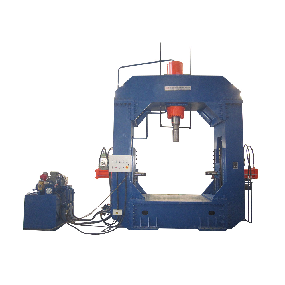 設(shè)備由龍門式液壓機、液壓站、控制柜、電動托架、托架導(dǎo)軌等部分組成。