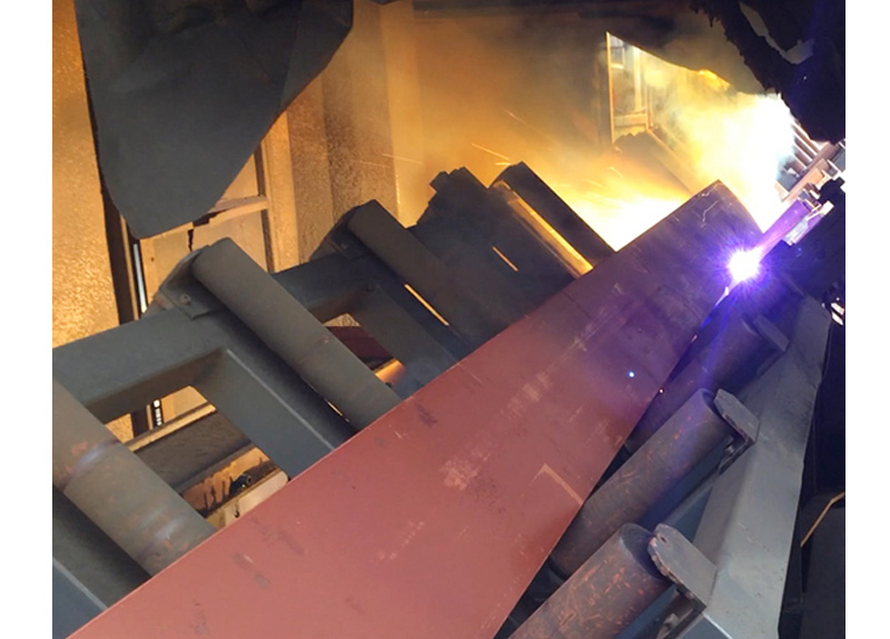 The machine is composed of loading roller, CNC trolley, trolley roller, press positioning, manipulator (include fixed support) movable overturns laying-off roller, plasma cutting system, control system, cutting smoke purification system.